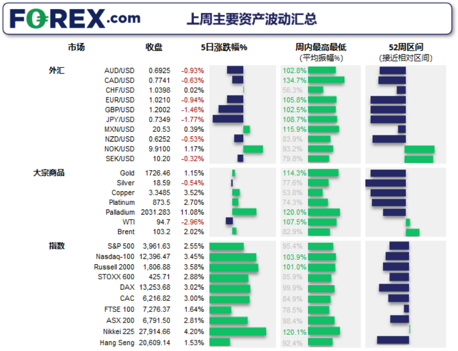上周,欧洲央行加息50个基点,出乎大部分市场参与者的意料。央行当时还推出“传导保护工具”。本周,FOC将接替欧洲央行站到聚光灯下。市场预期美联储加息75个基点,将基准利率上调至2.50%。但是,美联储有没有可能加息100个基点? 本周财报季极其引人瞩目,包括微软、亚马逊和苹果在内的科技巨头将发布