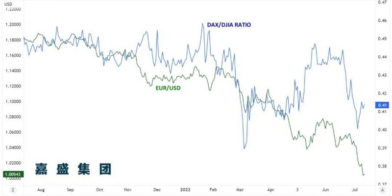 大宗商品市场最新的经济衰退忧虑源自德国ZW报告,其中西得州原油暴跌逾7美元,回到100心理大关下方。德国ZW表面读数报在-53.8,为2011年12月以来最低点,预期值和前值分别为-38.3和-28。7月ZW现况指数报在-45.8,预期值和前值分别为-34.5和-27.6。欧洲央行应该会在7月加息,只是加息“多少”尚未确定。欧洲央行货