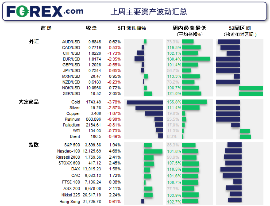 上周的前期波动 非农就业报告强于预期,6月新增37.2万人且失业率持平于3.6%。但我们已经注意到,过去数月发布的多项领先指标,暗示未来就业形势转差。 欧元最弱且似乎逼近平价。交易者越来越怀疑,欧洲经济正走向衰退。 铜价跌至20个月低点。铜价因全球经济衰退的担忧而承压下挫,但在周图形成了