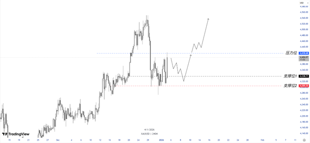 ATFX:不是简单避险:这一次,黄金正在对全球秩序重新定价 ATFX:2026年首个完整交易周尚未全面展开,黄金市场已率先被一场突如其来的地缘政治事件推向风口浪尖。周初亚洲时段,现货黄金大幅高开并快速走强,盘中一度上探至4370美元上方,单日涨幅接近1%。推动行情的并非宏观数据变化,而是周末美国对委内瑞拉采取的直