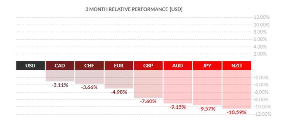 2022年上半年,美元“王者”地位得到强化,美元兑G10货币全面升值。 究其原因,地缘政治风险和经济衰退担忧促使投资者蜂拥避险,避险情绪极大鼓舞了美元多头。此外,通胀飙升之际,美联储激进加息也刺激了投资者对美元的兴趣,美债收益率不断走高推动美元上行。 在浓厚看涨情绪下,美元指数(DXY)飙升至20年高位。