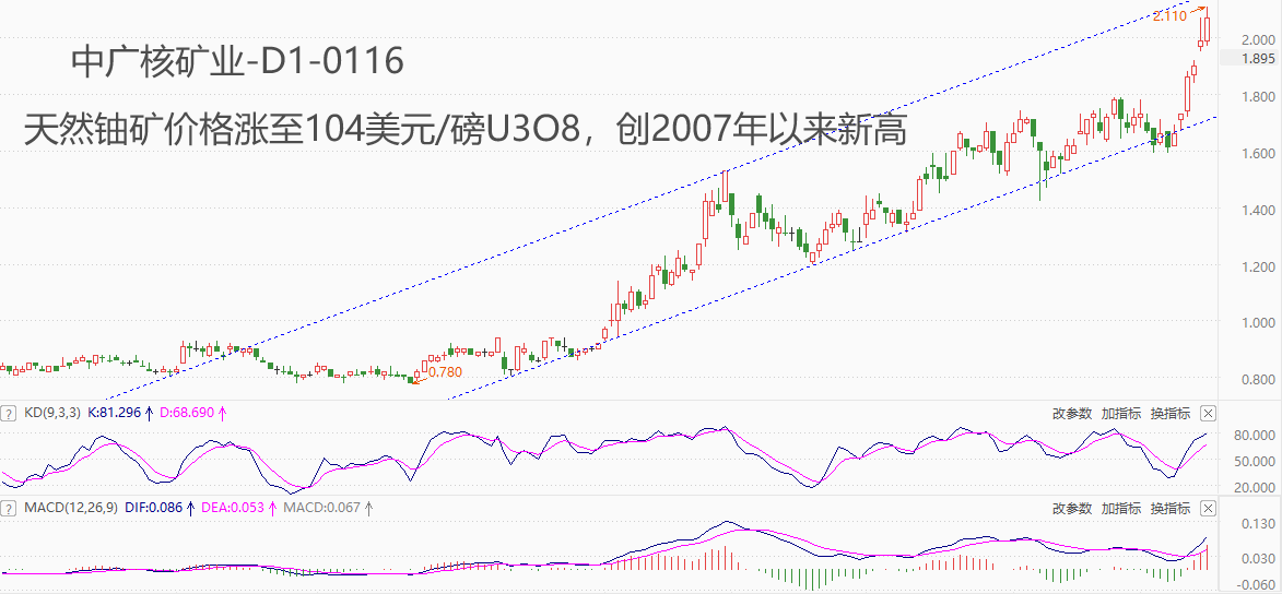 ATFX港股:中广核矿业六连阳,市价不断刷新上市以来新高 ATFX港股:今年以来,隶属于核电板块的中广核矿业,累计涨幅已超20%,最近六个交易日的累计涨幅逼近30%,市价屡创上市以来新高。为什么中广核矿业的股价开年以来表现如此靓丽?我们认为有以下几点原因: 铀矿价格创历史新高。中广核矿业是东亚唯一的纯铀业上