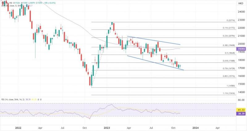 ATFX港股:多股绩后走软,恒指回吐逼近万七关口 ATFX港股:10月最后交易日,今日恒指低开68点报17337,跌幅随即扩大,半日急跌超过300点下试17000关口。内地制造业活动再陷收缩,国家统计局公布,10月份,中国制造业采购经理指数(I)降至49.5,逊于市场预期。 午后初段,科技指数维持走低,下跌2.5%,权重科技股下