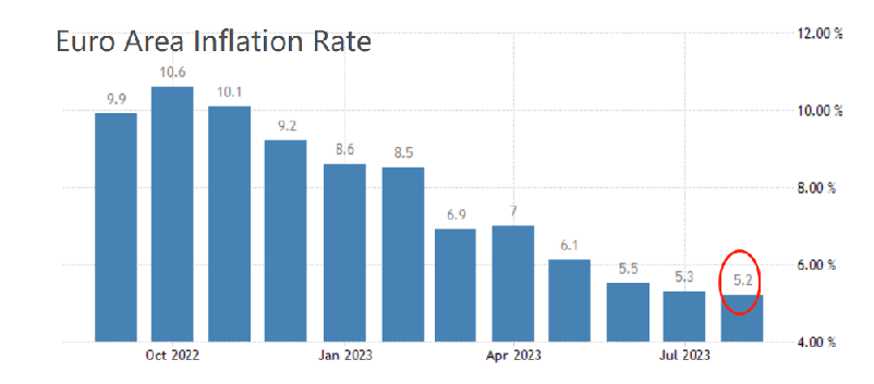 ATFX:国际市场,一周大事件前瞻(0925~0929) ATFX:本周的数据、事件重要性由高到低分别为:美欧元区9月CI年率初值、美国8月核心C物价指数年率。我们来逐一分析解读: ▲ATFX图 本周五17:00,欧盟统计局将公布欧元区9月CI年率数据,前值为5.2%,预期值4.6%,通胀率可能进一步下降。欧元区与英国的经贸