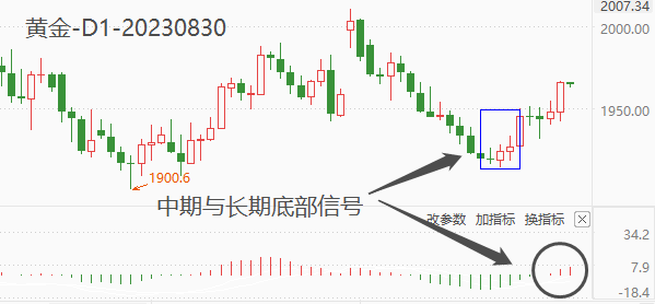 ATFX期市:黄金单日大涨17美金,重回1960上方,短期反弹态势确立 ATFX期市:8月29日,因美元指数重挫,黄金单日大涨17美元,盘中最高触及1966.5美元,时隔两周,重回1960上方。技术角度看,8月17日至23日形成底分形结构,支撑位1913美元。ACD柱状线翻越零轴由绿变红,中期趋势已转多。中期信号与长期信号共振下,预计