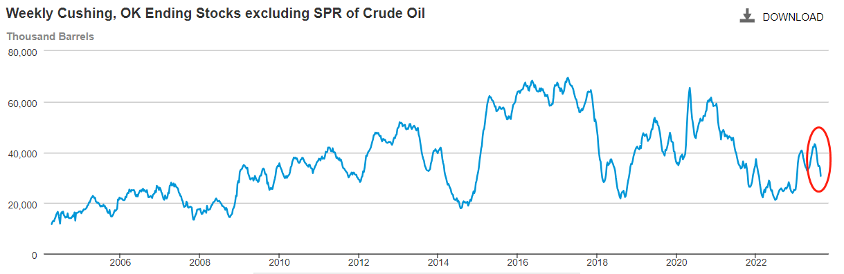 ATFX期市:库存不断减少之际,为何美原油跌势加剧? ATFX:8月18日当周IA库欣地区原油库存3066.9万桶,相比前值3380.2万桶下降313.3万桶。从库存曲线可以看出,自6月23日库存升至4324.4万桶中期高位后,随即开启下降趋势,至今未寻得支撑。供求关系看,库存下降意味着石油市场供不应求,逻辑上原油价格应当上涨。 8月