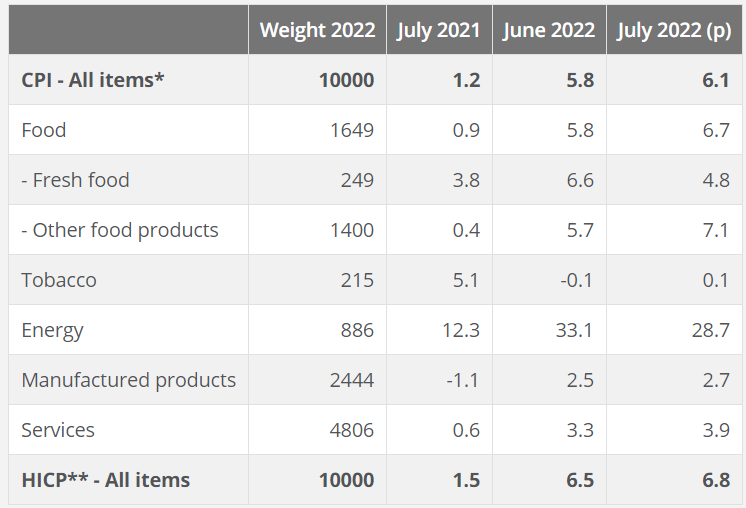 根据月底的初步估算,2022年7月法国居民消费价格指数(CI)同比上涨6.1%,前一个月同比上涨5.8%。通货膨胀的增加应该是由于与夏季有关的服务价格、食品价格以及(在较小程度上)制造业商品价格的加速。能源价格应该会放缓。 一个月后,消费者价格指数将上涨0.3%,6月份为+0.7%。由于石油产品的价格下跌,能源价格应该会