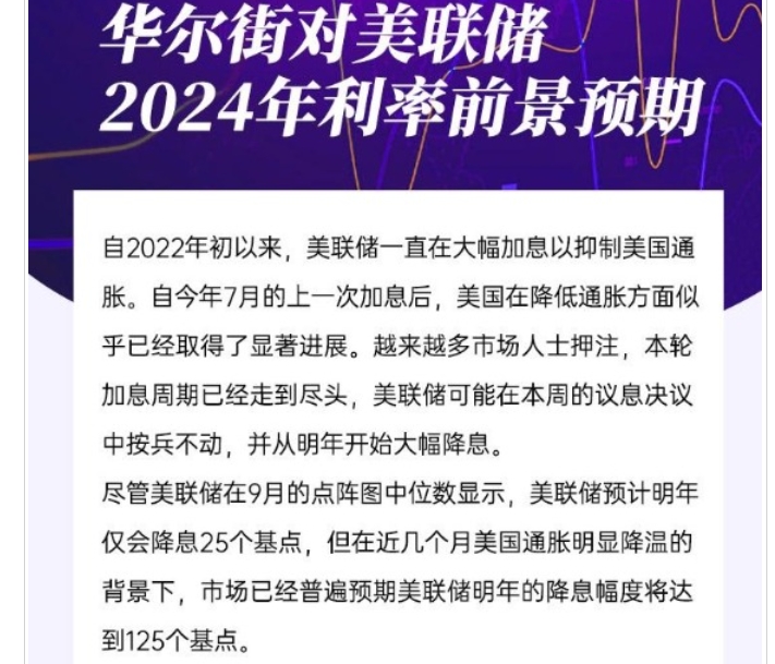 越来越多华尔街人士押注,美国本轮加息周期已经走到尽头,美联储可能在本周的议息决议中按兵不动,并从明年开始大幅降息;华尔街部分投行对美联储明年降息幅度的预期,以帮助您更好地理解预判美联储明年的行动以及美国宏观经济前景。