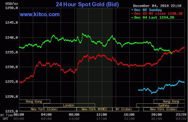 周三(12月5日)亚市盘中,现货黄金价格自高位有所回落,最新交投于1235美元/盎司附近。此前受美股大跌提振,金价隔夜一度刷新近1个半月高位1241美元/盎司。投资者看多贵金属市场的意愿仍较为明显。值得一提的是,周二钯金价格再度刷新历史新高,盘中一度超过现货黄金报价,为16年来首次!