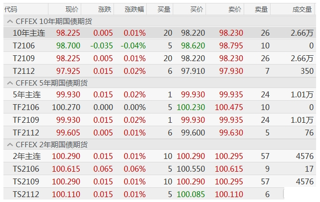 国债期货窄幅震荡午盘小幅上涨,10年期主力合约涨0.01%,5年期主力合约涨0.02%,2年期主力合约涨0.01%。银行间主要利率债收益率下行不足1bp,10年期国开活跃券210205收益率下行0.5bp报3.4925%,10年期国债活跃券200016收益率下行0.25bp报3.0875%。