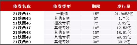 按照此前公布的发行计划,陕西省政府将于上午11:30-12:10招标发行七期地方债,期限5-30年不等,具体招标信息为: