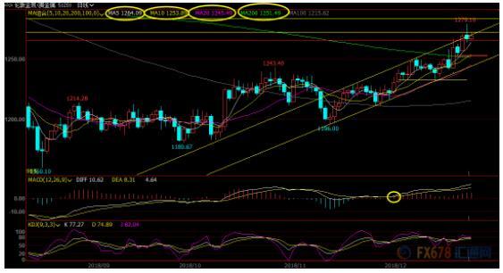 ÈÕÏß¼¶±ð£ºµ¥±ßÉÏÕÇ£»ÖÐÑôÏߺóÔÚÖØÒª×èÁ¦Î»µ¹¡°´¸×ÓÏß¡±£¬Óе㡰ÏÉÈËָ·¡±µÄ¼£Ïó£¬MACD½ð²æÔËÐУ¬½ð¼ÛÈÔÓлú»áÕðµ´ÉϹ¥£¬¹Ø×¢¸ôÒ¹¸ßµã1279.10¸½½ü×èÁ¦£¬ÈôÉýÆÆ¸ÃλÖã¬ÔòÓÐÍû½øÒ»²½ÉÏ̽1286.97¸½½ü×èÁ¦£¬¸ÃλÖÃÊÇ1366-1160µøÊƵÄ61.8%»Ø³·Î»£¬¶ÌÏßÉÏÆÆÄѶȽϴó¡£