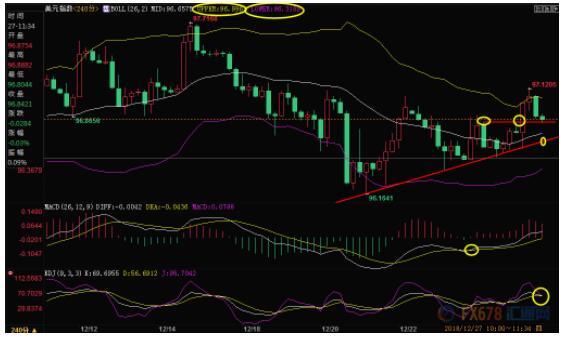 ÈÕÏß¼¶±ð£ºÕðµ´£»»ã¼ÛÔÚ²¼ÁÖÏßϹ츽½ü»ñµÃÖ§³Å£¬KDJÖØÐ½á³É½ð²æ£¬»ã¼Û¶ÌÏßÂÔ΢ƫ¶à£¬³õ²½×èÁ¦ÔÚ12ÔÂ18Èոߵã97.16¸½½ü£¬ÈôÄܶ¥ÆÆ¸ÃλÖã¬ÔòÓÐÍû½øÒ»²½ÉÏ̽²¼ÁÖÏßÉϹì97.49¸½½ü×èÁ¦¡£