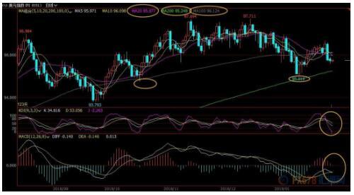 ÈÕÏß¼¶±ð£ºÕðµ´£»KDJËÀ²æ£¬5ÈÕ¾ùÏßÏ´©10ÈÕ¾ùÏß½á³ÉËÀ²æ£¬MACDÒ²ÓÐÖØÐ½á³ÉËÀ²æµÄ¼£Ï󣬻ã¼ÛÊ§ÊØ100ÈÕ¾ùÏß96.13ºÍ20ÈÕ¾ùÏß95.98Ö§³Å£¬¶ÌÏßÇãÏòÓÚÏÂ̽200ÈÕ¾ùÏß95.25¸½½üÖ§³Å£¬½øÒ»²½Ö§³ÅÔÚ1ÔÂ10Èյ͵ã95.01¸½½ü£¬ÈôÊ§ÊØ¸ÃλÖã¬ÔòÔö¼Ó¶ÌÏß¿´¿ÕÐźţ»10ÔÂ16Èյ͵ãÖ§³ÅÔÚ94.77¸½½ü¡£