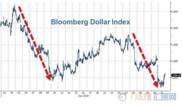 周四(1月31日)美元止跌反弹,受压于德国央行行长魏德曼的言论,欧元兑美元走低。过去两个月,美元指数下跌近1.7%,为一年来最大两个月跌幅。美联储周三表示,对今年进一步升息将保持耐心,指出美国经济前景的不确定性增加。如果经济需要,美联储不排除使用一系列工具,包括改变资产负债表的规模和构成,以及降息。道明证券高级外汇策略师Mazen Issa表示,在美联储发表声明后,道明证券现在已经改变了对美联储的预测,现预计美联储今年只会再加息一次,而不是两次,且将是本轮加息周期的最后一次。