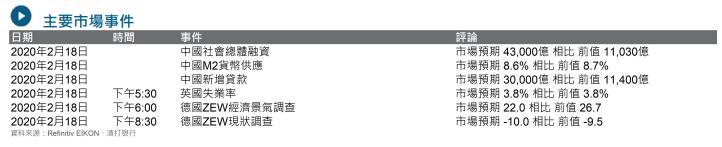 经过一个气氛淡静的欧洲交易时段以及美国公众假期后,外汇市场整体变幅不大。日本第四季经济增长数据令人失望,加上市场忧虑新型冠状病毒爆发的影响,意味整体第一季经济表现料将疲软,而日本可能会陷入技术性衰退。类似的忧虑亦困扰在包括欧元区在内的大多数市场。今天德国将会公布最新有关经济情绪和市场状况的调查数据。欧元兑美元保持在1.0820 - 50附近区间窄幅波动,但我们预计汇 价会反弹至1.0900 - 20并舒缓部份超卖压力。美元兑日圆于109.50见 到支持,而在110.10 - 30附近的甚强阻力相信在短期内仍可以维持。