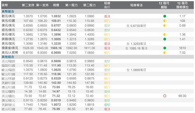 金价反弹至1586 - 1591美元附近的阻力位,而我们在略高于1585美 元的水平触发了我们看淡金价的观点。虽然我们维持中线看好的观 点,但短线我们正等待金价整固至较低水平。金价现时缺乏进一步上 升的动力,而投机性长仓经过好一段时间后亦可能会先行平仓。金价 料会下试并跌穿1545美元支持位,而1600美元相信仍是阻力所在。