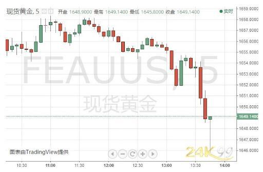 现货黄金亚市盘中自1655美元/盎司附近水平快速下跌,最低一度触及1645.80美元/盎司。