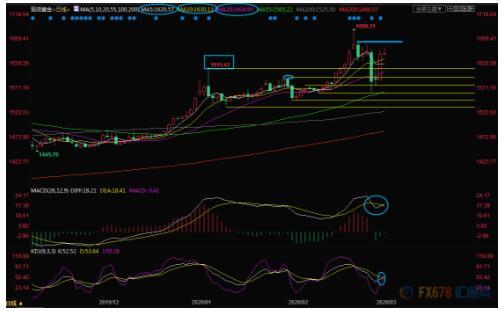 在顶破1664.04前,仍需提防震荡筑顶的可能性,下方初步支撑在10日均线1630.15附近,5日均线支撑在1620.63附近,20日均线支撑在1604.96附近,若回落至该位置下方,则增加短线看空信号。