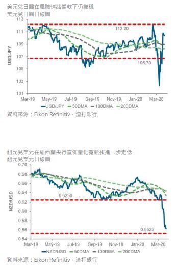 澳元兑美元今周在澳洲关闭多个场所以舒缓新型冠状病毒爆发下展开走势。澳洲还宣布了660亿澳元的额外刺激计划,包括向中小企提供现金支付及部分贷款的措施。0.5485 - 0.5510仍然是关键观察水平。纽元在新西兰央行宣布将在未来12个月内于二手市场购买最多300亿纽元政府债券后走弱。汇价即市支持料在于0.5525附近。
