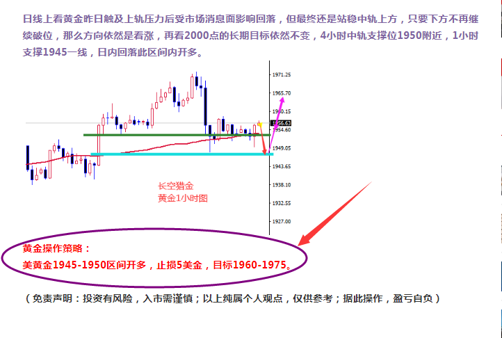 黄金1960干多,止损1954,目标1975-1980区间,若直接颇为1972则直接追多。