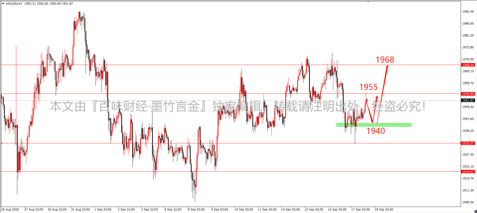 经历了探底反转,对于看空思路有所抑制,虽金价的反弹已经抵达预期的1955美元关口受压,并且日线的量能或将呈现第二轮空头下挫,但我并*不认为**黄金在本阶段迎来深度回撤,就算存在,我还是*要*看多黄金*,不轻易*的改变了,否则就失去了主*观看法,就会**模棱两可,我*不*太喜欢。*