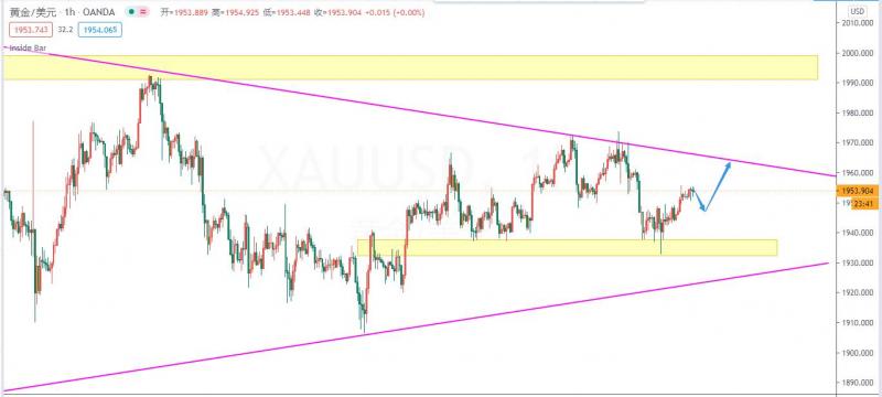 考虑到当前黄金还是处于三角形震荡收敛的结构当中,上方先不要过分看太远。前高1973就是个不错的极限目标。如果今天真的能给到1970,下周就有很大概率会继续冲击2000关口。因为对于收敛结构而言,横盘就等于上涨。