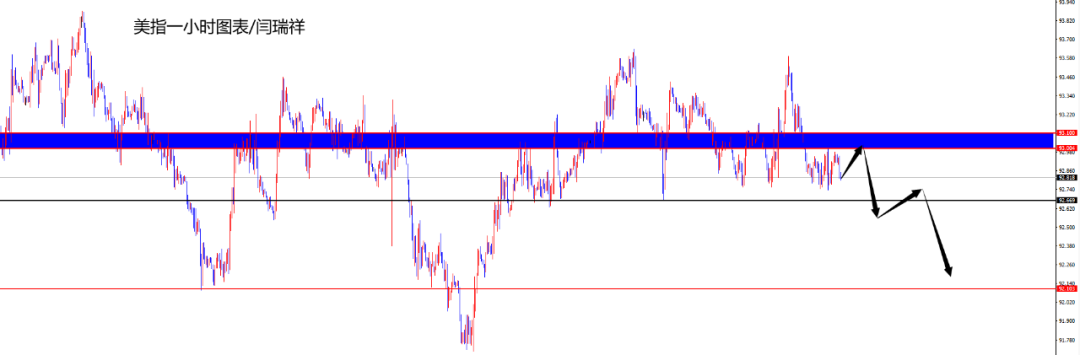 美指93.00-10区间空,防守5美金,目标92.70-10
