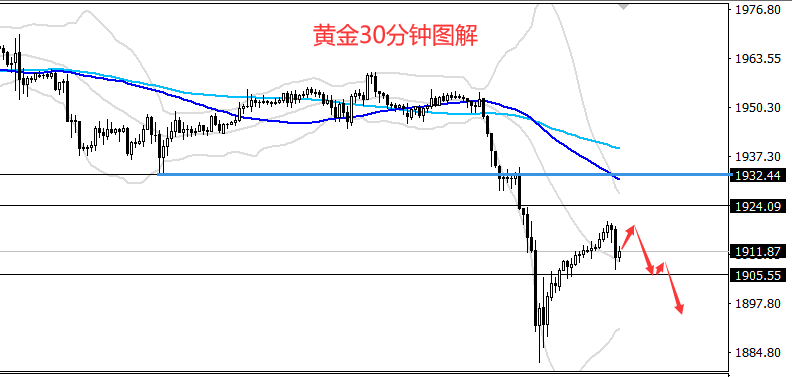 ¼¼ÊõÃæ·½Ã棬ÈÕÏßÊÕ³¤ÒõÏߣ¬4Сʱ¼¶±ðÁ¬ÐøÊÕÒõ£¬½ð¼ÛÏòÏÂÁ¬ÐøÍ»ÆÆ1930£¬1920¼°1900¹Ø¿Ú£¬¸ôÒ¹ËäÈ»·´³éÖÁ1910ÉÏ·½£¬µ«¿ÕÍ·¸ñ¾Ö²¢Î´´òÆÆ¡£Ð¡Ê±Ïß¼¶±ð£¬²¼ÁÖÏß¿ª¿Ú´ò¿ª£¬KÏßÊܾùÏß¼°²¼ÁÖÏßÖйìÑ¹ÖÆ£»30·ÖÖÓ¼¶±ð£¬²¼ÁÖÏß¿ª¿Ú¿ªÊ¼ÊÕËõ£¬·´µ¯¿Õ¼äÊܵ½ÏÞÖÆ£¬KÏßÒÀÈ»ÔÚ¾ùÏßÏ·½ÔËÐУ¬ÊܾùÏßÑ¹ÖÆ¡£ËùÒÔ£¬ÈÕÄÚ²Ù×÷ÒÀÈ»ÒÔ·´µ¯×ö¿Õ˼·ΪÖ÷¡£