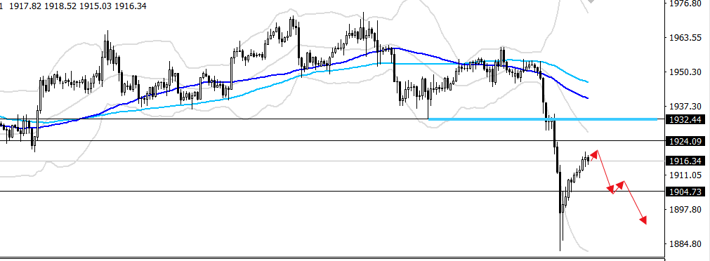 ¼¼ÊõÃæ·½Ã棬ÈÕÏßÊÕ³¤ÒõÏߣ¬4Сʱ¼¶±ðÁ¬ÐøÊÕÒõ£¬½ð¼ÛÏòÏÂÁ¬ÐøÍ»ÆÆ1930£¬1920¼°1900¹Ø¿Ú£¬¸ôÒ¹ËäÈ»·´³éÖÁ1910ÉÏ·½£¬µ«¿ÕÍ·¸ñ¾Ö²¢Î´´òÆÆ¡£Ð¡Ê±Ïß¼¶±ð£¬²¼ÁÖÏß¿ª¿Ú´ò¿ª£¬KÏßÊܾùÏß¼°²¼ÁÖÏßÖйìÑ¹ÖÆ£»30·ÖÖÓ¼¶±ð£¬²¼ÁÖÏß¿ª¿Ú¿ªÊ¼ÊÕËõ£¬·´µ¯¿Õ¼äÊܵ½ÏÞÖÆ£¬KÏßÒÀÈ»ÔÚ¾ùÏßÏ·½ÔËÐУ¬ÊܾùÏßÑ¹ÖÆ¡£ËùÒÔ£¬ÈÕÄÚ²Ù×÷ÒÀÈ»ÒÔ·´µ¯×ö¿Õ˼·ΪÖ÷¡£
