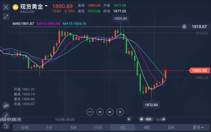 昨天美盘后黄金大幅下跌,上方反弹最高触及1920之后便开始连阴下行,截止今天上午最低回撤到了1872一线,日线收了一根大阴。