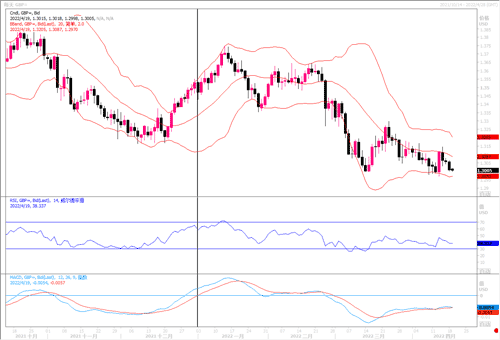 周一正值欧洲复活节长假,英镑兑美元波动较为平静,价格主要围绕1.3030附近波动。接下类,美联储5月议息会议越来越近,美联储加息50个基点的几率在增大,鲍威尔在近期的讲话当中,一直展现的都是采取积极立场,而英国央行行长贝利在最近的讲话中,传递的确是温和加息路线,这让英镑近期一直表现的都是G7货币中最弱的一个。从日线图上看,经过3月中旬一轮拉升后,英镑又开始进入下跌之途,上方短期1.3160目前都难以逾越,就更不用说测试穿透1.3270了。目前下方1.30-1.2970这个区域的支撑反而显得极为关键,若跌穿,英镑兑美元将会继续寻求更低的低位支撑。