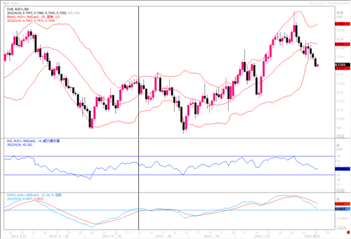 澳元/美元跌破上周低点 0.7392 后,周一复活节经历一场血洗。亚市澳元/美元已经下跌愈 0.5%,并且在中国经济数据疲弱的环境下,澳元/美元将进一步走弱。与此同时,美元指数整体走强打压澳元买盘。由于美国通胀上升且劳动力市场紧张,美债收益率正出现大幅上升。美国消费者价格指数录得几十年来的高水平且就业率持续低于 4% ,这些因素综合下来表明美联储有望大幅加息。展望后市,美联储主席鲍威尔讲话将成为关键事件。不过,投资者还将关注周二公布的澳储行会议纪要。在技术图形上,4小时图上,澳元兑美元汇价仍挣扎在0.7340附近,汇价受压于短期均线下方,但技术指标则有超卖和钝化迹象,因此短线下行会变缓,下方的关键支撑在0.7300,若跌穿下行幅度仍要延展。若能产生短线反弹,上方初步阻力在0.7420附近,进一步在0.7500。