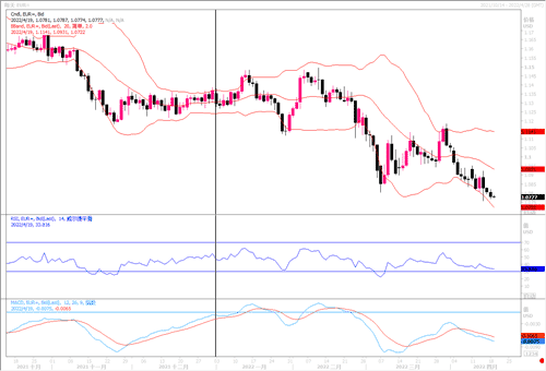 周一(4月18日)美元指数尾盘上涨0.29%,报100.79,一度触及100.86,为2020年4月以来最高;指标美国10年期国债收益率触及2.884%的逾三年高位。美国利率期货市场预计,5月美联储政策会议加息50个基点的可能性为96%,2022年累计加息幅度料约为215个基点,这为美元提供了充足的支撑。欧元兑美元下跌0.26%,至1.0780美元,略微脱离上周触及的1.0758美元的2020年4月以来最低,欧元区利率何时上升的不确定性继续打击欧元。目前在日线图上,欧元兑美元仍处在不断下探试低之中,但空头势力步伐颇为谨慎,上周四到过的年内低点1.0757的支撑显得关键,若跌穿,下方将进一步测试1.0720、1.0638这些2020年3月份曾到达过的低位。上方的阻力目前分别在1.0850、1.0920。