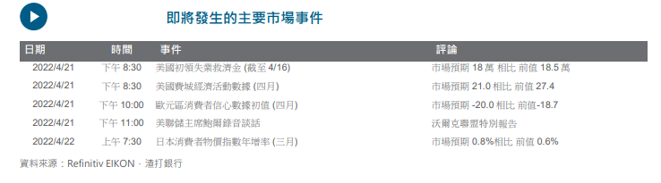美元指数未能突破 101,随後与美国 10 年期国债孳息率从接近 3% 的趋势高点一同回落。整体美国债券收益率居高,可能意味着美元将在下一次 5 月初的美联储会议之前盘整。