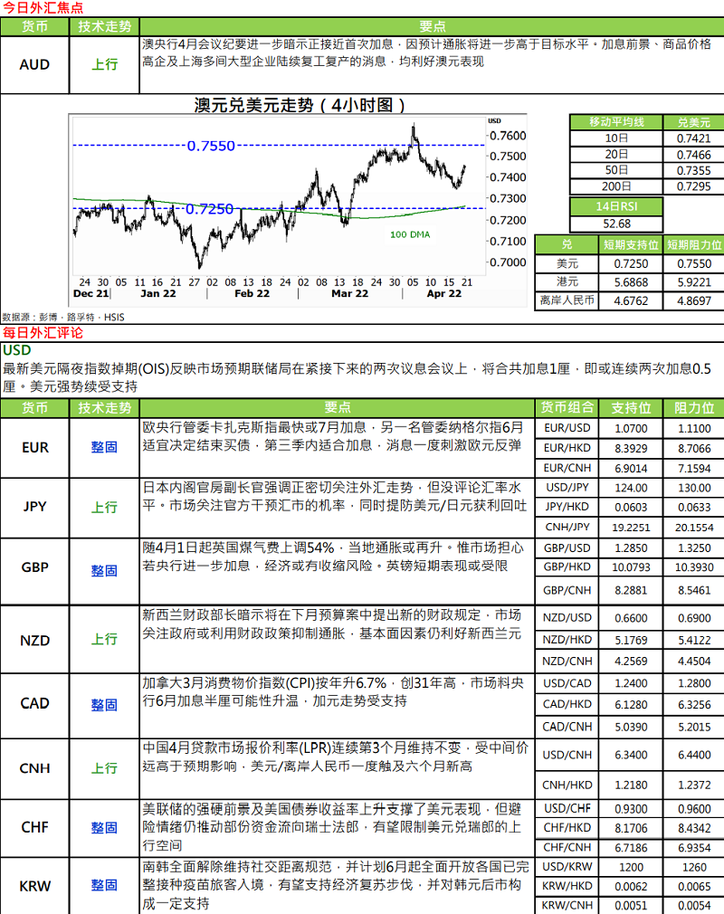 · 德国 3 月生产物价指数(PPI) 按年上升 30.9%,为连续第四个月创纪录新高,且远高于市场预期及前值的分别 28.2%及 25.9%.若按月计算,德国 PPI 仍大升 4.9%,亦远高于市场预期及前值的分别 2.6%及 1.4%,主要受能源价格急升影响,反映俄乌危机正带动企业成本飙升。期内,不包括能源的核心生产价格(PPI)按年上升 14%.德国上游通胀持续攀升,于往下传导的预期下,可想象目前 7.3%的年通胀率将有机会再被推高。