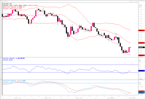 北京时间周四(5月5日)凌晨美联储公布利率决议, 美联储22年来首次将利率上调0.5个百分点(50个基点),6月份将再次上调利率。美联储预计将在未来2年5个月内从近9万亿(兆)美元的资产负债表中剥离2.7万亿美元,速度快于此前预期。鲍威尔在美联储发表政策声明后举行的记者会上表示,美联储没有积极考虑升息75个基 点,加息的靴子落下,由于此前已将此计价在预期内,非美货币反而在消息后产生反弹。此外,货币市场上也增加了对欧洲央行加息的押注 ,预计2022年底前将加息95个基点,这至少可缩窄与美元的息差。截至5月5日亚洲早盘,欧元兑美元盘中快速上涨报 1.0619。在日线图上,欧元兑美元有在1.05附近构筑底部迹象,RSI自超卖区域拐头,MACD信号线有形成金叉迹象,若欧元反弹能冲破布林带中轨1.07的压制,则反弹势能或能推动欧元兑美元向 1.08-1.09价格目标回升。