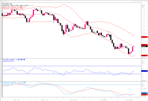 欧盟统计局5月17日发布数据显示,经季节调整后,欧元区19个国家第一季度国内生产总值同比增长5.1%,环比增长0.3%,均好于预期。 受良好经济数据刺激,欧元兑美元在隔夜外汇市场上大幅反弹1.12%,高收于1.0550附近。目前日线图上,汇价仍受压在20均线下方,下行通道仍保持完整,但MACD信号线似形成金叉,RSI也开始脱离超买区域底部出现抬升,若反弹能进一步突破日线图上布林带中轨1.06,则反弹幅度有望进一步抬升;若遇阻,则欧元的颓势恐怕还要延续。