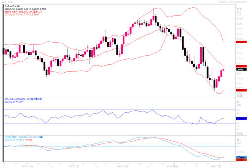 美元指数徘徊于103.3附近,美元周二连续第三天下跌,兑一篮子主要货币继续从20年高位回落,因投资者风险偏好上升削弱了美元的吸引力。被视为风险偏好的流动性指标的澳元兑美元上涨0.8%,周二公布的会议记录显示,澳洲联储在5月会议上曾考虑更大幅度的升息,这强烈暗示将在6月再次升息。澳元昨日继续震荡上行,日线小幅收涨。除空头回补持续对汇价构成支撑外,美元指数持续回调也是支撑澳元反弹的重要因素。此外,市场的风险情绪转暖,大宗商品国际铜、铁矿石等价格走高也对商品货币澳元构成了一定的支撑。亚市早盘,澳洲联储公布的决议纪要偏鹰,澳元持续上行,现汇价交投于0.7000附近。今日关注0.7100附近的压力情况,下方支撑在0.6900附近。