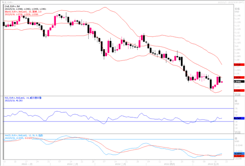 5月18日欧盟统计局的统计数据显示,受能源和食品价格大幅上涨影响,今年4月欧元区通胀率按年率计算达7.4%,低于此前的初步预估7.5%;核心CPI月率为1.2%,与预期一致。低于预期的通胀率数据似乎降低了欧央行迫切加息的欲求,导致在周三的外汇市场上,欧元兑美元自周二到过的高位1.0550回落。但是我们也必须看到,欧元区通胀率连续6个月在创历史新高,因此欧央行压制通胀还是任重道远,加息项似乎是避不开的选项。在小时图上,经过昨日的回落,目前在1.04之上得到支撑,技术指标呈超卖状态。日线图上欧元兑美元仍勉力撑持在5日均线之上,技术指标仍似乎保持拐点向上散发状态,若汇价能坚守1.04之上,反弹仍可期。