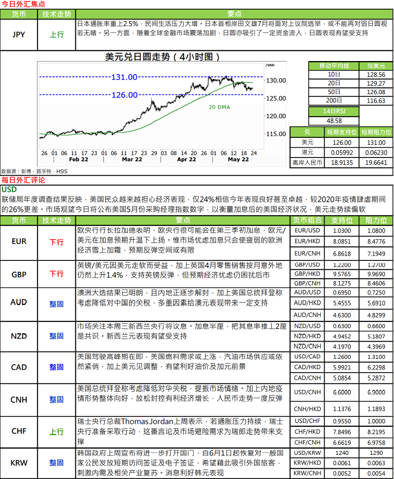 · 欧央行行长拉加德于央行网页发文指,据目前展望,央行可能于第三季退出负利率。此外,若中期通胀能稳定于 2%水平,利率逐步向中性水平进一步正常化将是合适做法。明显面对着欧元区高企于 7.4%的年通胀率,即使立场偏鸽的行长拉加德亦难视若无睹。受欧央行或提前收紧货币政策预期影响,带欧元汇价作出反弹。
