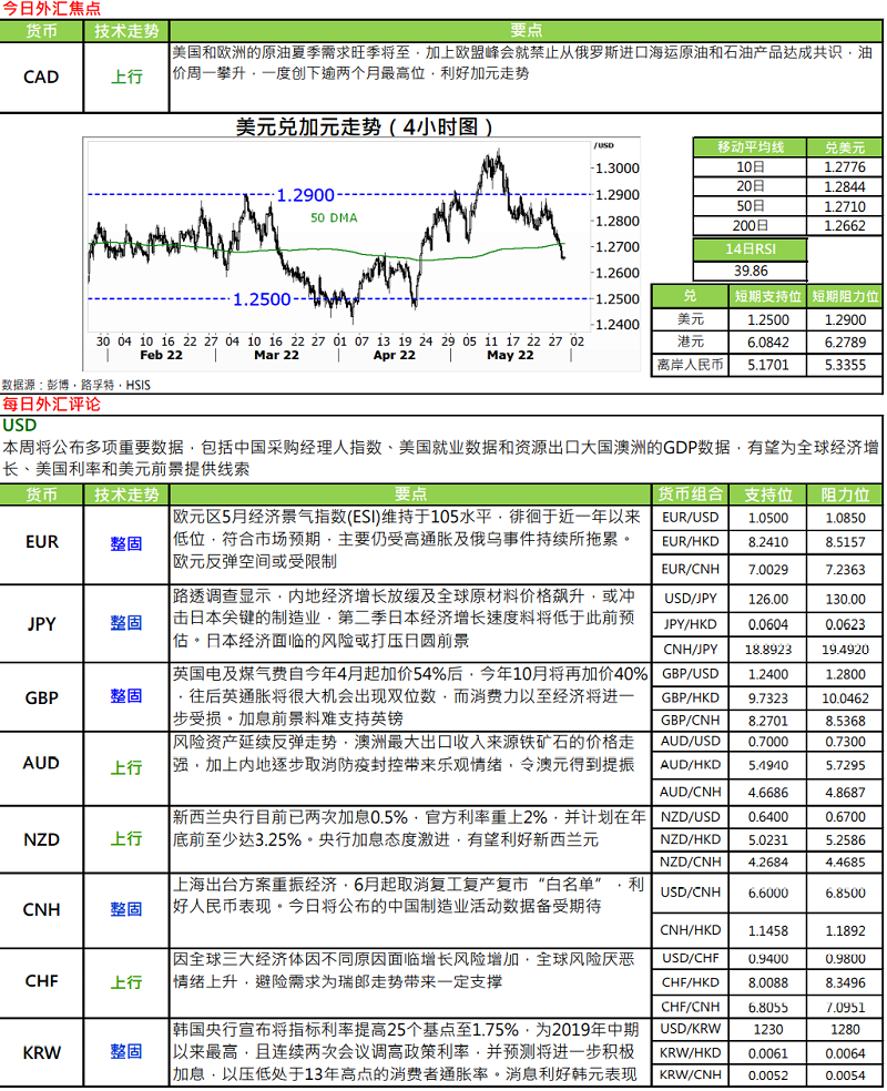 · 德国 5 月消费物价指数(CPI)按年续攀升至 7.9%,创近 49 年高位,较前月上升 0.5 个百分点,市场原先预期为上升 7.6%.主要仍受能源及食品价格攀升所带动,当中能源产品价格按年上升38.3%.至于食品格价按年亦飙升至 11.1%.而服务业通胀增长则放缓至 2.9%.鉴于俄乌事件持续,且见近期石油及食品价格仍高企,市场估计现阶段德国通胀也难言见顶回落。