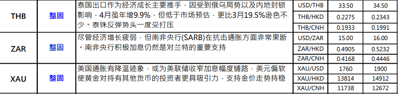 · 欧元区 5 月经济景气指数(ESI)维持于 105 水平,徘徊于近一年以来低位,符合市场预期及前值的104.9,主要仍受高通胀及俄乌事件持续所拖累。期内,经济不确定性指数(EUI)亦由前月的 26.5 下跌至 23.4.而就业预期指数(EEI)则由 112.6 微升至 112.9.至于消费者及制造业通胀预期指数,则分别由前月的历史高位的 50 及 45.6,下降至 45.6 及 56.1,反映上下游通胀有降温迹象。