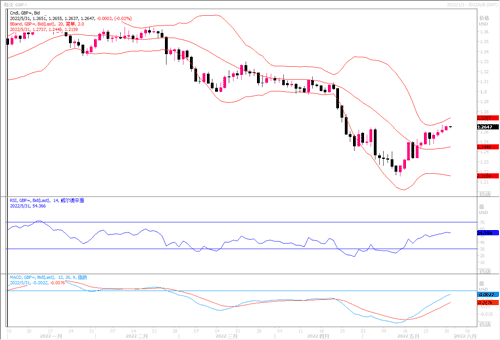 拜美元继续走软所赐,在周一(5月30日)外汇市场上,英镑兑美元继续小幅上攻。目前对于我们交易的英镑来讲,最关键的还是英国央行的态度,现在这个节骨眼上,是否改变原有的谨慎态度,选择强硬加息的政策,来控制日益高企的通胀;这也将左右着英镑接下来的涨跌,目前来说只能算是美元助推的上涨,其自身根本就谈不上有多么强。从英镑的日线技术面来看,英镑上一段下行自1.364起跌,三个月跌至1.215的低点,目前处于反弹阶段,但上方面临着来自前值下行趋势线的转换压力,以及1.286的短期下行趋势压力,同时上方也将面临本轮行斐波那契回撤位50%压力和60日均线的压力1.286-1.289,在多重压力的压制下,英镑突破的机会显得难度较大,须警惕冲高无果后出现的回落风险。日内继续留意近期高点1.2667水平的阻力情况,若遇阻回落,下方的支撑位置依次将是1.26、1.2556、1.2500。