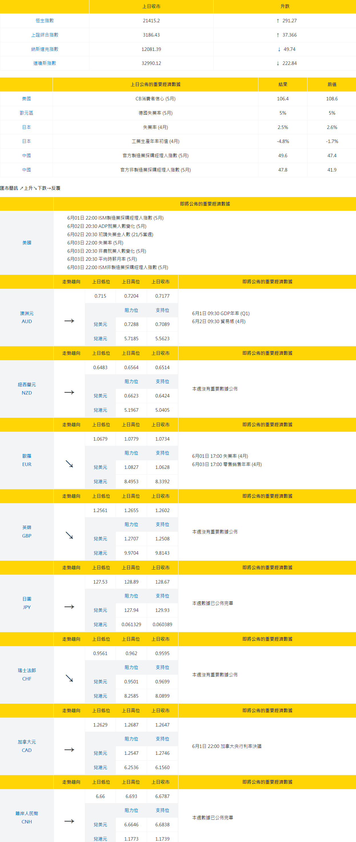 大丰银行:今日外汇走势分析和投资策略(2022年6月1日)