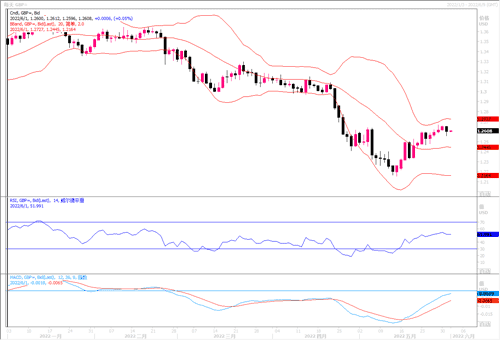 周二(5月31日)英镑兑美元全日微幅下跌0.39%,收盘在1.2605水平附近。5月份的最后一个交易日,英镑却还在5月初的1.263价格附近徘徊不前,自上周四突破1.260以来,价格上基本就没有太大的变动。最近英国推出150亿英镑的家庭支持计划,但英镑的反应相当冷淡;英镑的主要汇率并没有什么太大的波动。目前英国的经济状况是:通胀仍处在40年以来的高位,制造业服务业数据惨目忍睹,经济呈现衰退的迹象,就业还跟不上,三者让他占全。在如此状况下,就要看英央行接下来是否还会继续加息。一旦其有定下来的举动,将对英镑构成大的打击。技术面来看,日线图中显示,英镑仍在上一段下行趋势线的转换压力附近徘徊,通过k线的运行和macd多头动能缩减的情况来看,英镑即使能够做到突破,也并不会迎来太强的拉升,更何况上方还存在着1.2860-1.2890的压力(60日均线-本轮下行斐波那契50%回撤位)。从这些信息上来看,英镑随时有拐头向下的风险,下行注意1.2600和1.2550的支撑。