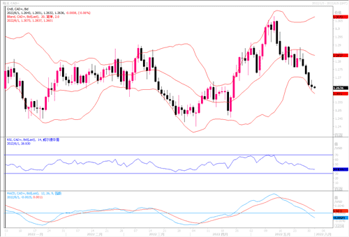 在周二(5月31日)外汇市场上,美元/加元继续震荡下行,失守1.2700关口并刷新26个交易日低位,现汇价交投于1.2640附近。除美元指数在多重利空因素的联合打压下走软对汇价构成了一定的打压外,原油价格在欧盟制裁俄石油产品致供给紧张而走高也是施压汇价走软的重要因素。此外,汇价在跌破1.2700关口的支撑后吸引部分技术面卖盘的介入也加剧了汇价的跌幅。日线图上,美元兑加元下行势头明显,技术指标持续朝负向区域发展。短线小时图上,出现超卖状态,或会有短线空头回补的调整。日内关注1.2750附近的阻力情况,下方支撑在1.2600附近。