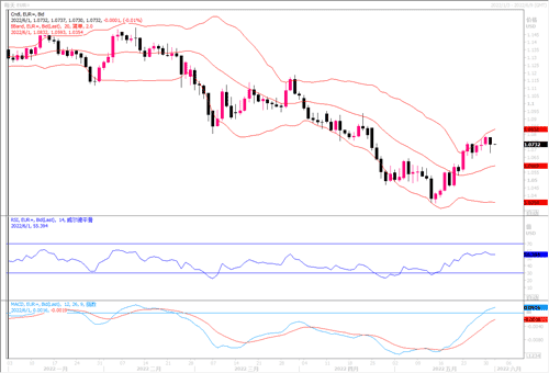 周一(5月30日)欧元公布5月CPI年率初值录得8.1%,预期7.7%,4月终值7.4%,续刷纪录新高。 欧元区5月份的通胀数据继续飙涨超出预期,进一步增加了欧央行的压力,从而也更坚定了市场对于欧央行将在7月和9月进入加息行列的预期。但是数据似乎未对欧元产生太大的抬捧作用。周一欧美价格总体还是呈现在近期高位区域拉锯状态。当日价格最高于1.0786位置,最低于1.0725位置,收盘于1.0734位置。回顾昨日市场表现,早间开盘后价格就延续前期震荡上涨,价格晚间如期测试日线阻力1.0780区域,但是未能冲破,且随后遇阻回落日间低位。目前看价格短线受到压制,价格有修正的表现,一旦修正的话有望测试1.0650区域。而且考虑到美联储6月仍将继续加息50基点的预期较笃定,短线要考虑欧元兑美元面临短线压力出现回撤修正行情的出现。