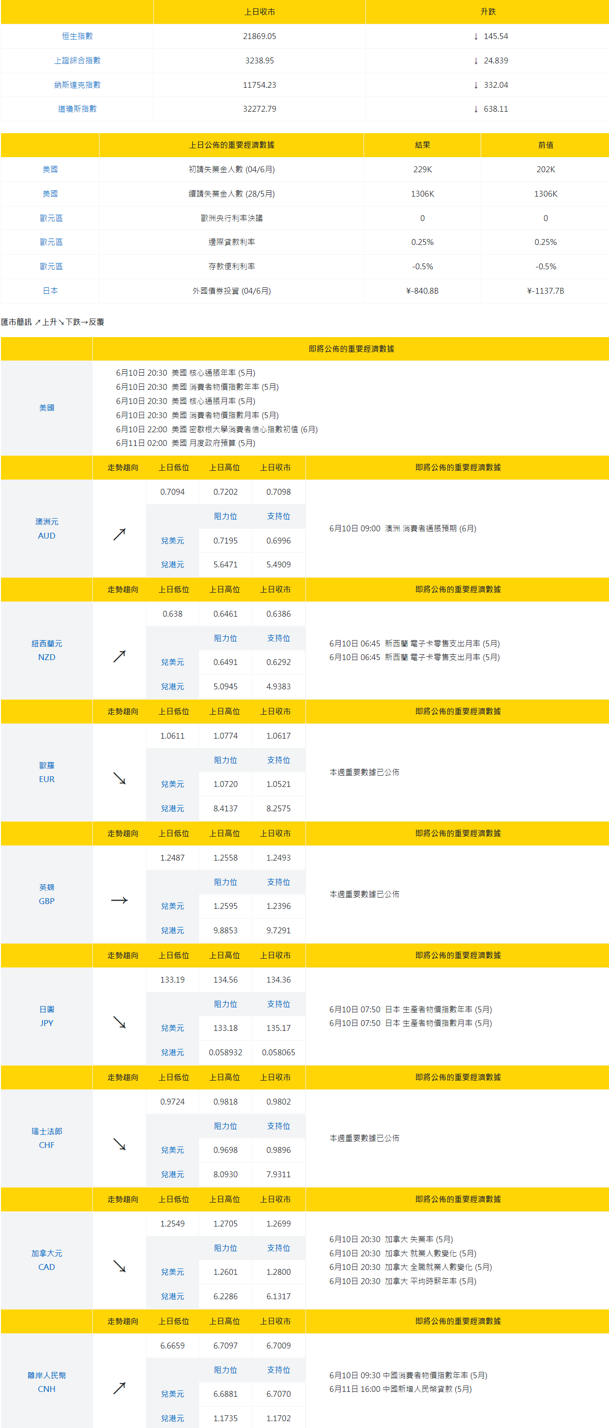 大丰银行:今日外汇走势分析和投资策略(2022年6月10日)