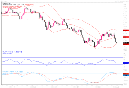上周美元兑一篮子货币周五触及近四周最高,此前数据显示美国5月消 费者物价加速上涨,强化了这样的预期,即美国联邦储备理事会(美联储/FED)可能会将50个 基点的加息进行到9月,以打击通胀。在截至5月的12个月中,消费者物价指数(CPI)大涨8.6%,刷新3月所创的四十年来最高增速,4月涨幅为8.3%。经济学家曾 希望CPI同比涨幅在4月就已经触顶。目前看通胀仍未有见顶的迹象。由于美国通胀数据打击投资者的风险偏好,上周五欧元兑美元出现大幅下行超过1%,盘中最低到达过1.0504水平。美元调整预期101.5企稳再次上涨,那么欧元反弹随时结束,现在欧洲央行预期7月后才开启加息,显然紧缩货币政策反应迟钝,同时乌克兰危机暴露出能源,难民和粮食危机也是阻碍经济复苏,短期欧元反弹空间有限,现在压力集中1.0580-1.0630区域。日线级别图上,汇价目前远低于各短期均线之下,MACD信号线出现死叉,绿色动能柱开始向下发散,短线小时图有超卖迹象,即便有短线空头回补升高,恐也会被空头继续视为入场的时机。若欧元进一步下走,下方目标将是5月13日曾到达过的低位1.0350。